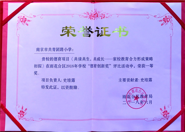 史培露负责的德育项目荣获区“德育创新奖”一等奖