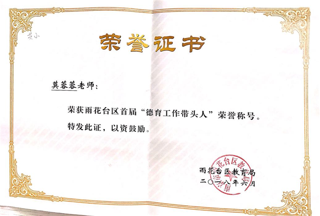 莫蓉蓉荣获雨花区首届“德育工作带头人”称号