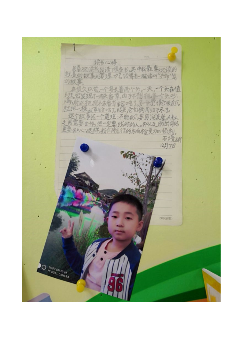 二2班第14周“读书小明星”——石镜琳同学