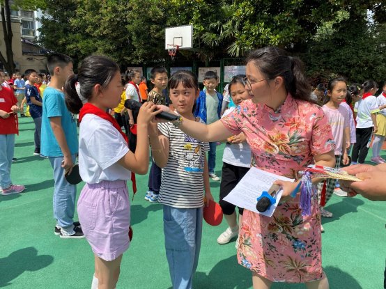 学生们热情高涨,每每老师询问孩子一个问题,一片小手便高高举起;无论是询问到谁,准确、响亮的答案充满了操场的每一个角落。