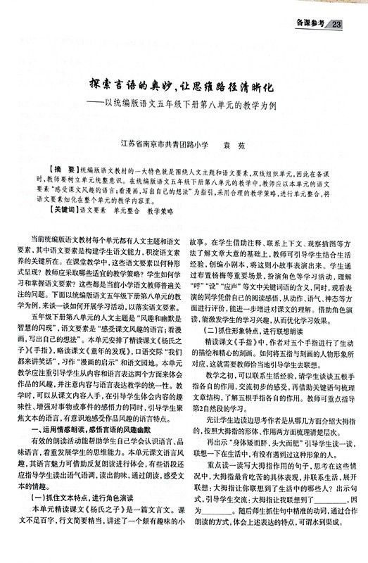 袁苑老师《探索言语的奥秘,让思维路径清晰化》发表于《小学教学研究》