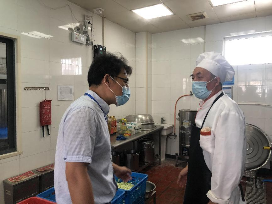 常书记首先感谢食堂工作人员的辛苦付出,同时要求他们不要轻视任何一个操作过程,不疏漏任何一个细节,严防病从口入,确保全校师生饮食卫生安全。