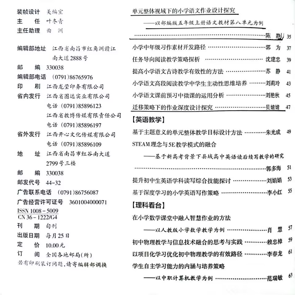 贝婧婧老师的文章《迁移策略下的作业深度设计探究》发表于《教师博览》