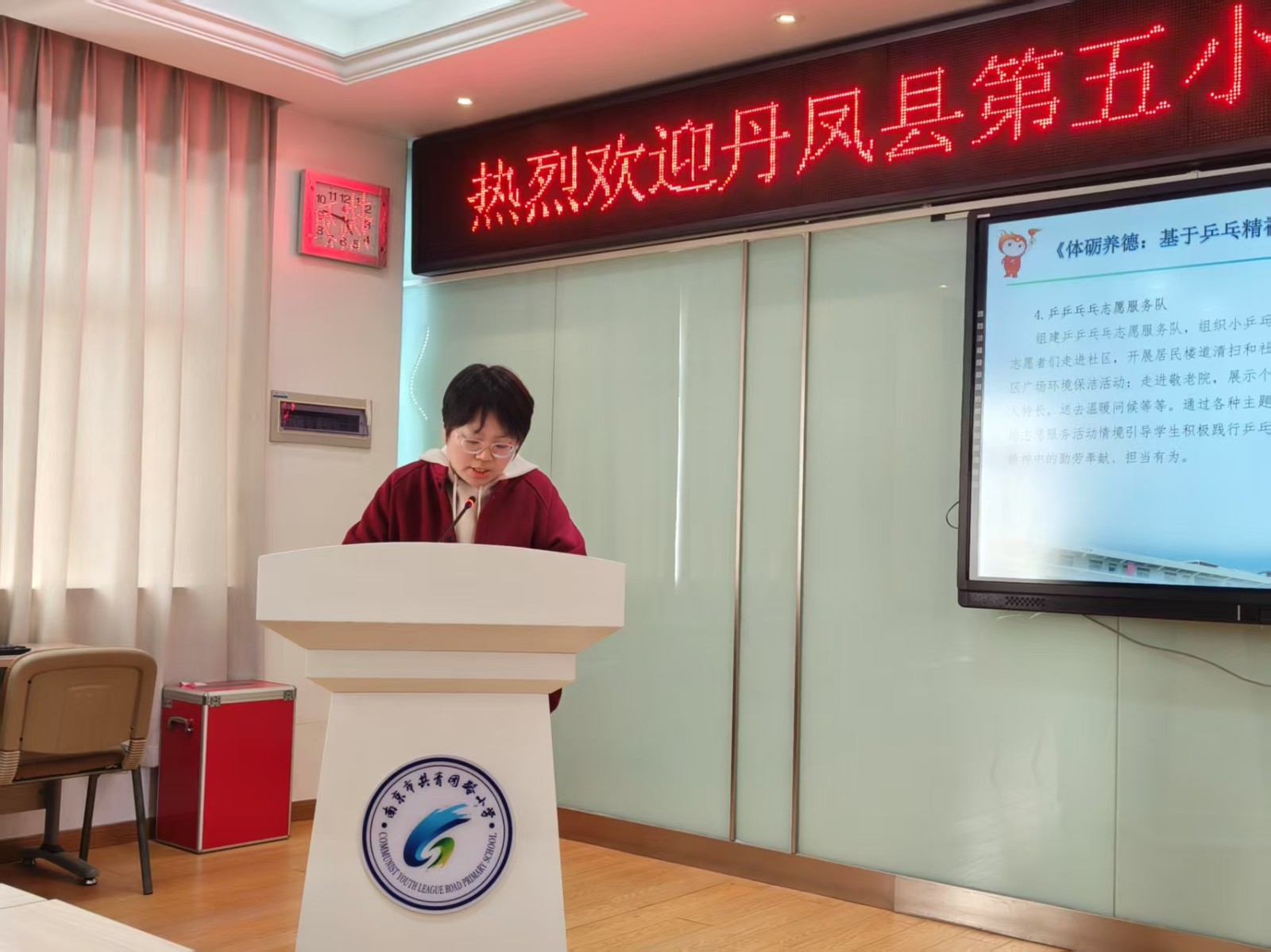 少先队辅导员史培露老师分享了共青团路小学品格提升工程项目汇报,凸显了项目研究对学生全面成长的深度关注。教导处陶雯静副主任介绍了共青团路小学乒乓球浸润课程的构建——从基础技能培训到竞技梯队打造,再到以球育德、以球健体理念的贯穿始终,全面而深入地展示学校特色课程的构建和取得的成绩。语文教研组长陈静老师以《千卷诗书凝硕果,教海探航绽芳华》为题,围绕着“适性课堂”的构建,深情回顾了教研组从“青涩”到“成熟”的蜕变之路,阐述了学科组的创新做法。